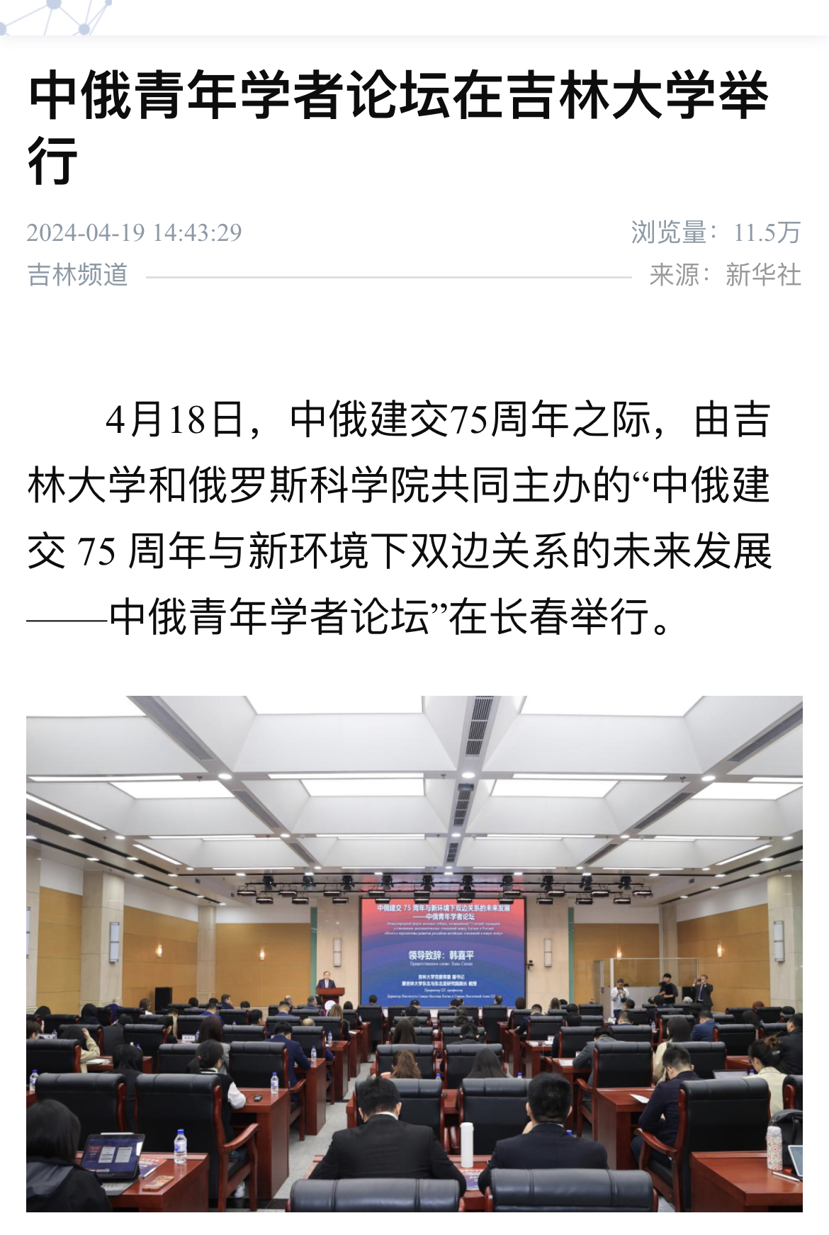 4月18日,中俄建交75周年之际,由吉林大学东北与东北亚研究院、东北亚研究中心,欧洲杯 、东北亚研究院,欧洲杯 欧洲杯 主办,《东北亚论坛》编辑部协办的“中俄建交 75 周年与新环境下双边关系的未来发展——中俄青年学者论坛”在吉林大学举行。